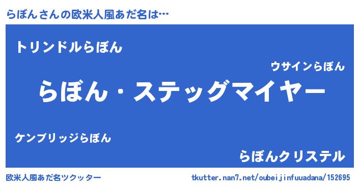 | 男性向けラノベタイトル風あだ名 | 『うちのらぼんが世界を掌握している!』 |