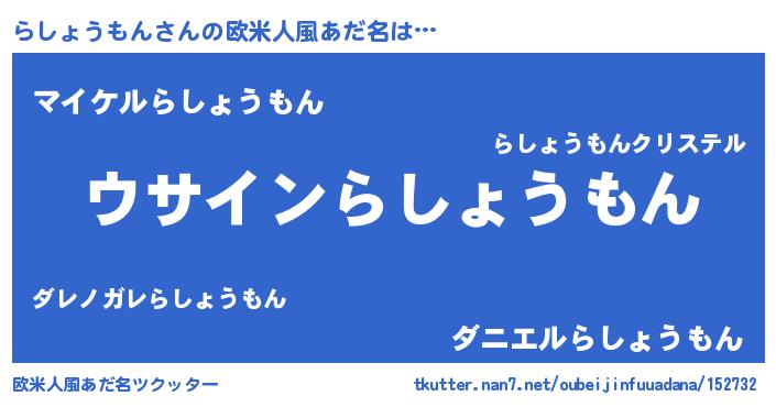 | 萌えアニメ | 主人公(らしょうもん)のあだ名『らしょうもんにゃん』 |