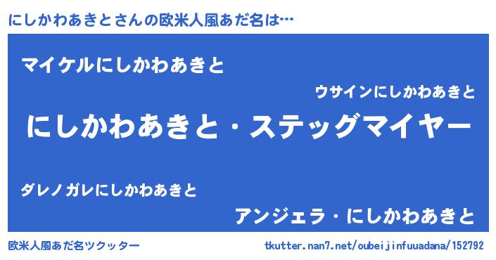 | 男性向けラノベタイトル風あだ名 | 『緋弾のニシカワアキト』 |