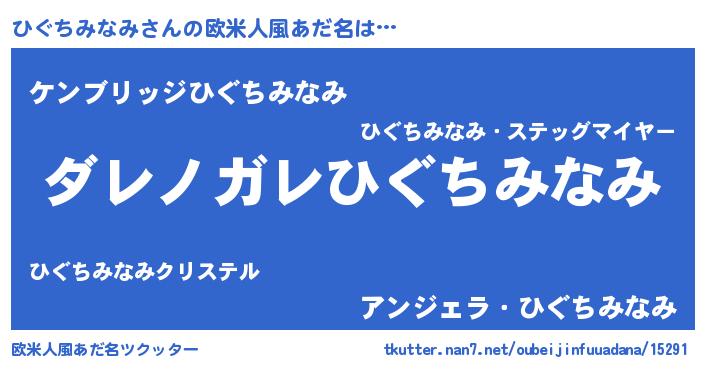 | 意味不明あだ名 | 『住所不定無職ひぐちみなみ(85歳)』 |