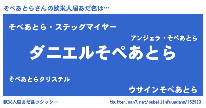 | ヘコむあだ名 | 『そぺを』『豆乳』『そぺっふぃ~』 |