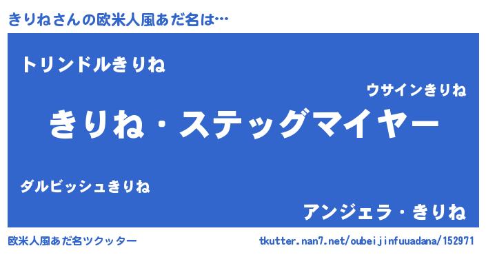 | 男性向けラノベタイトル風あだ名 | 『緋弾のキリネ』『はたらくきりねさま!』 |