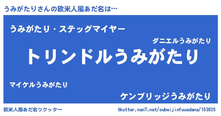 | 男性向けラノベタイトル風あだ名 | 『転生したらうみがたりだった件』 |