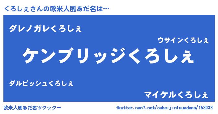 | 男性向けラノベタイトル風あだ名 | 『Re:くろしぇから始める異世界生活』 |