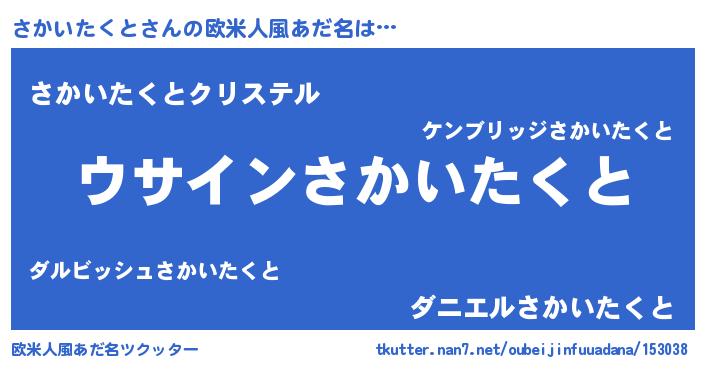 | 女子向けラノベタイトル風あだ名 | 『さかいたくと様がみてる』 |