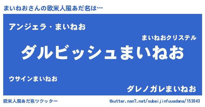 | 男性向けラノベタイトル風あだ名 | 『まいねおという概念が存在しない退屈な世界 』 |