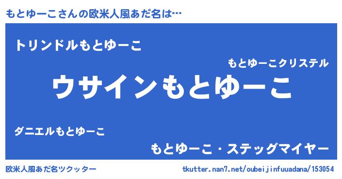 | 男性向けラノベタイトル風あだ名 | 『もとゆーこの嫁は女の子じゃないと思った?』 |