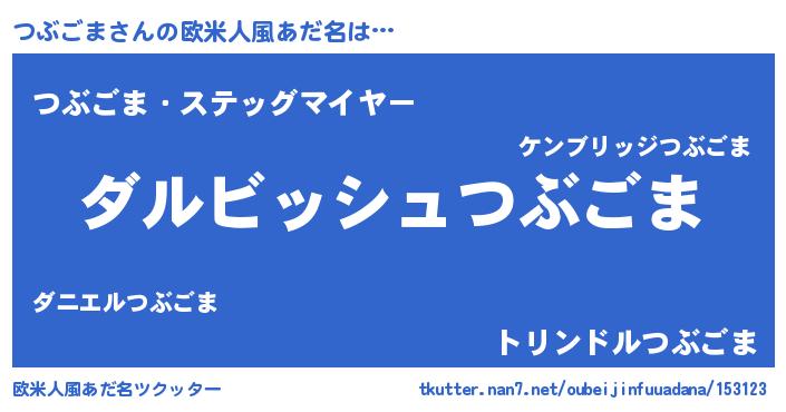 | 男性向けラノベタイトル風あだ名 | 『つぶごまという概念が存在しない退屈な世界 』 |