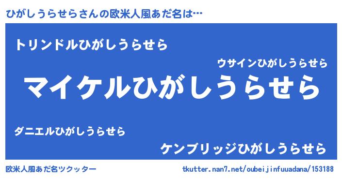| 男性向けラノベタイトル風あだ名 | 『ヒガシウラセラアートオンライン』 |