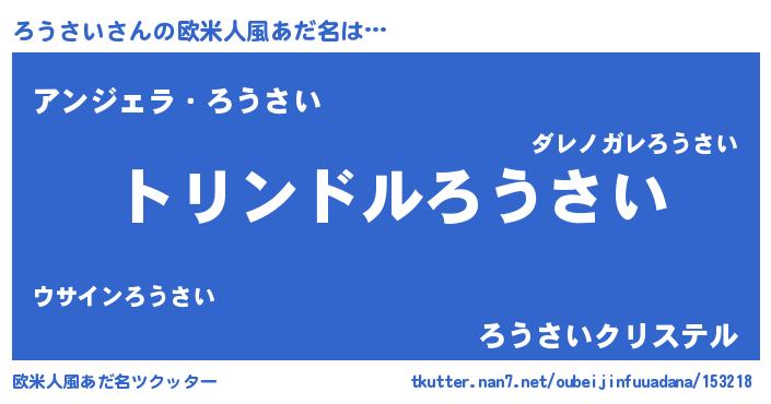 | 男性向けラノベタイトル風あだ名 | 『ろうさい~年齢イコール彼女いない歴の魔法使い~』 |