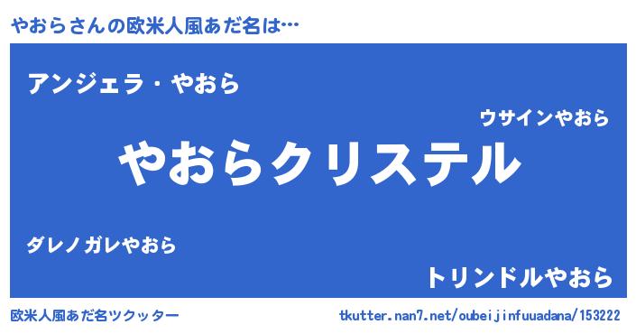 | ファンタジー風あだ名 | 『エターナルヤオラー』『ヴァルヤオーナ』 |