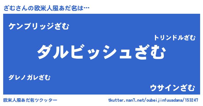 | 女子向けラノベタイトル風あだ名 | 『ざむの契約王妃』『ざむの玉の輿計画!』 |