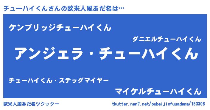 | ヘコむあだ名 | 『チュもー』『チューハイくん(小並感)』 |