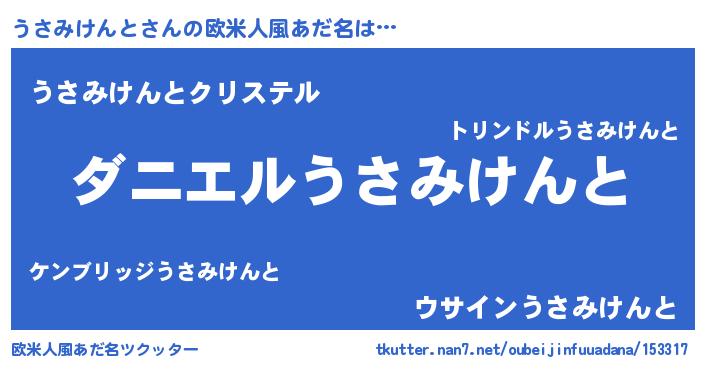 | 男性向けラノベタイトル風あだ名 | 『おまえをオタクにしてやるから、俺をうさみけんとにしてくれ! 』 |