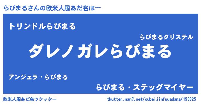 | 女子向けラノベタイトル風あだ名 | 『乙女ゲームの破滅フラグしかない悪役らびまるに転生してしまった…』 |