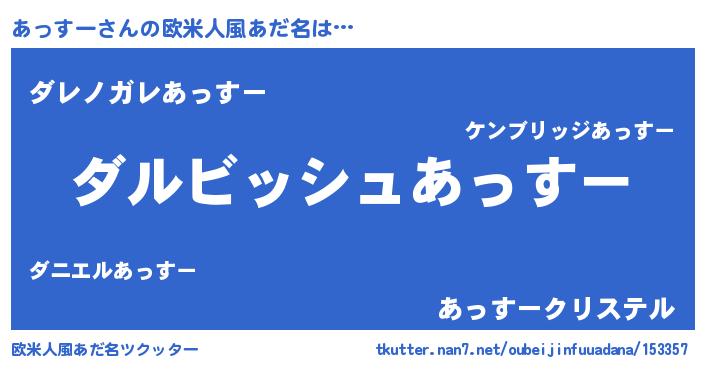 | 意味不明あだ名 | 『永久保存あっすー』『自称あっすー』 |