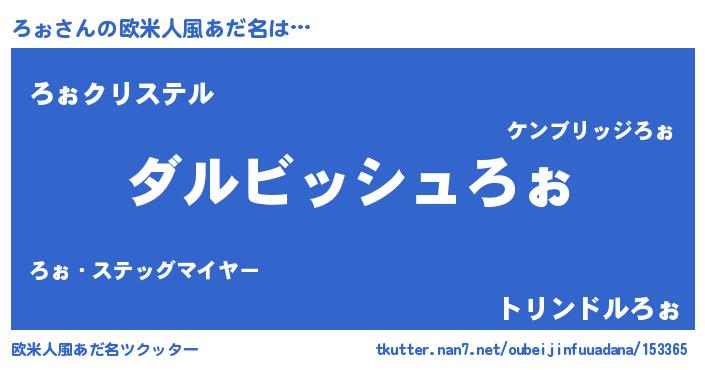 | ヘコむあだ名 | 『ろぉ(笑)』『豆乳』『ろぉにゅー』 |