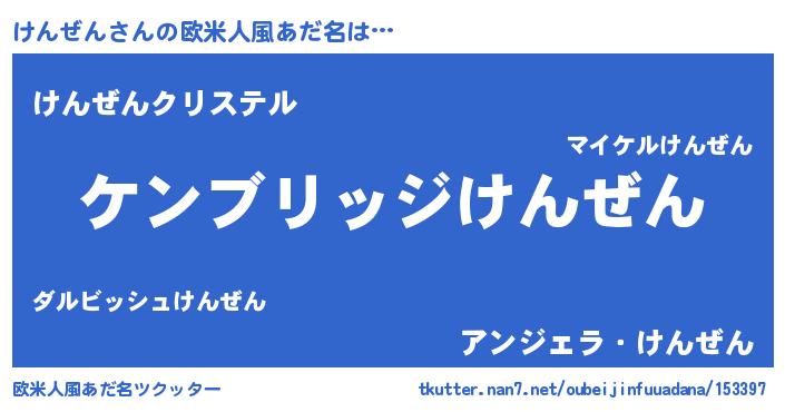 | 男性向けラノベタイトル風あだ名 | 『Re:けんぜんから始める異世界生活』 |