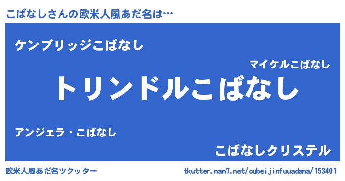 | 女子向けラノベタイトル風あだ名 | 『こばなしの玉の輿計画!』 |