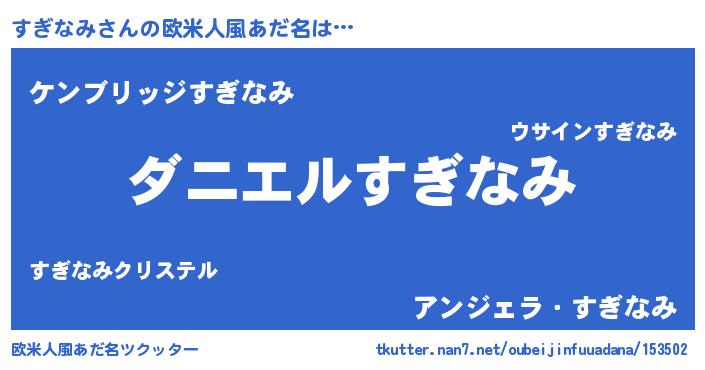 | ヒーロー風カッコイイあだ名 | 『愛の使者すぎなみ』『最強戦士スギナミ』 |
