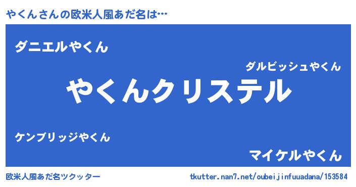 | 女子向けラノベタイトル風あだ名 | 『やくん伯爵の花嫁』『死神やくんの再婚』 |