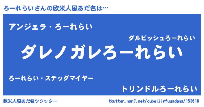 | ヘコむあだ名 | 『ろーれらい(笑)』『なまこ酢』 |