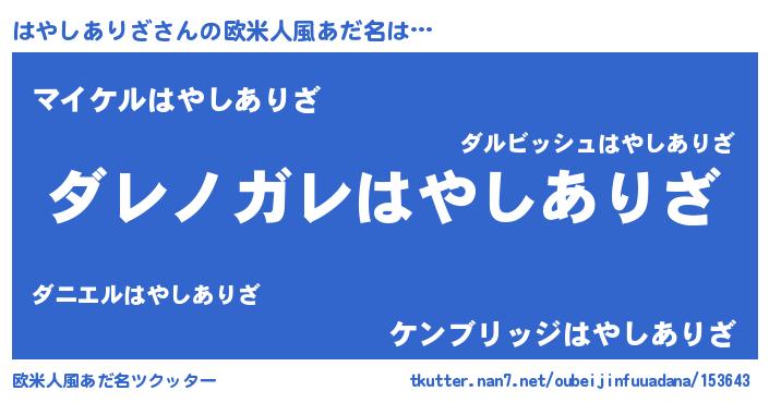 | ヒーロー風カッコイイあだ名 | 『仮面ハヤダー』『スーパーハヤシアリザ』 |