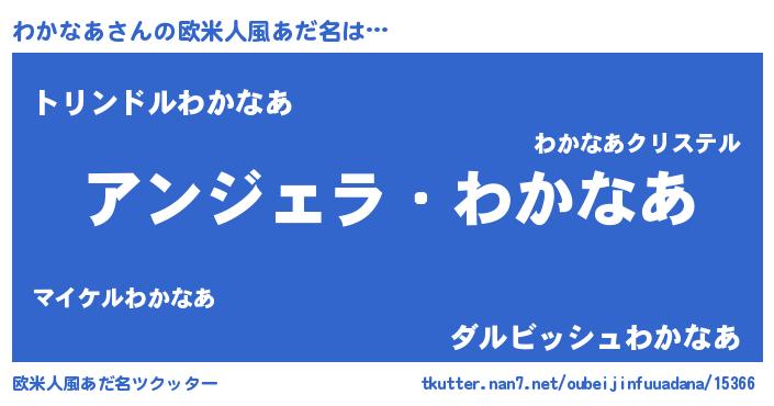 | 男性向けラノベタイトル風あだ名 | 『わかなあに滅ぼされるだけの簡単なお仕事です』 |