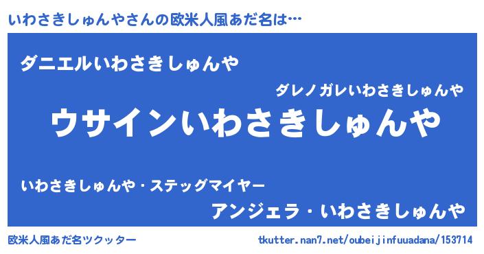 | 男性向けラノベタイトル風あだ名 | 『ダンジョンにいわさきしゅんやを求めるのは間違っているだろうか』 |