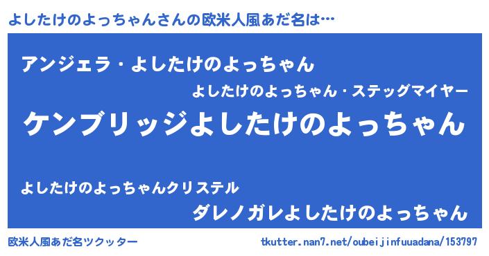 | 女子向けラノベタイトル風あだ名 | 『よしたけのよっちゃんなんてお断りですっ。』 |