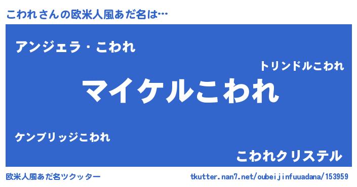 | ヒーロー風カッコイイあだ名 | 『スーパーコワレ』『ウルトラこわれマン』 |