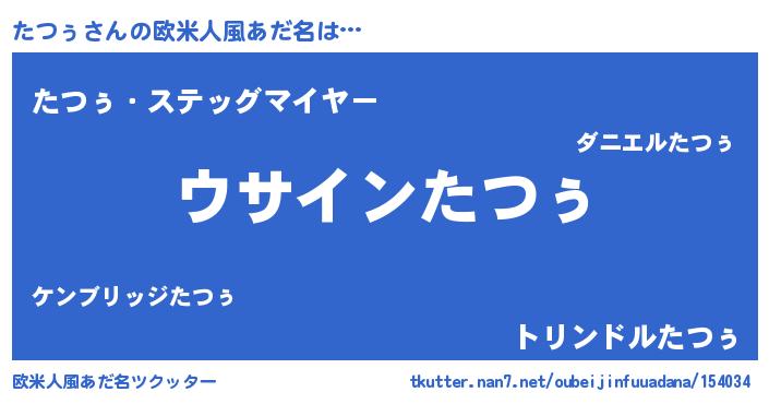 | 女子向けラノベタイトル風あだ名 | 『たつぅの卵を拾いまして』『闇のたつぅ』 |
