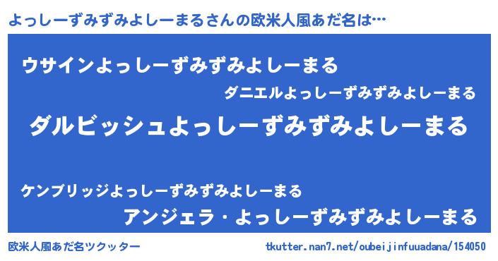| 意味不明あだ名 | 『永久保存よっしーずみずみよしーまる』 |