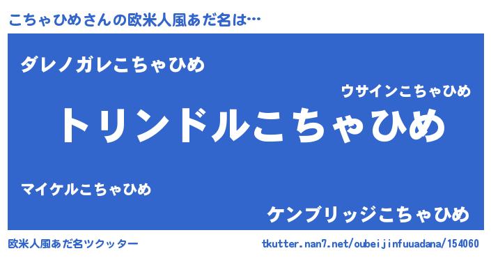 | 男性向けラノベタイトル風あだ名 | 『こちゃひめ~年齢イコール彼女いない歴の魔法使い~』 |