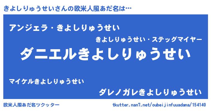 | 男性向けラノベタイトル風あだ名 | 『おまえをオタクにしてやるから、俺をきよしりゅうせいにしてくれ! 』 |