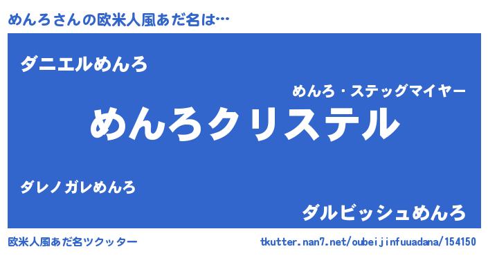| ヘコむあだ名 | 『牛乳』『めんろ(爆)』『めんっ子』 |