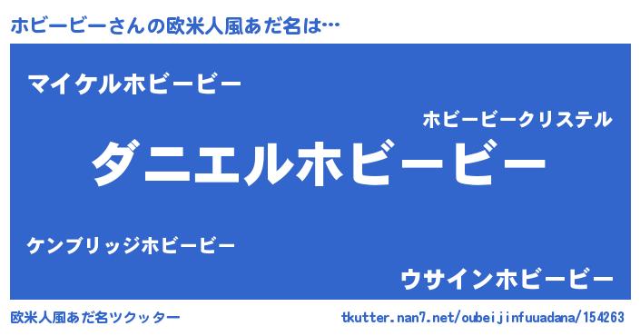 | ヘコむあだ名 | 『ホビもー』『ホビ太郎』『つくし』 |