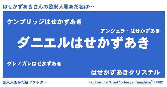 | 男性向けラノベタイトル風あだ名 | 『ノーゲーム・ノーハセカズアキ』 |