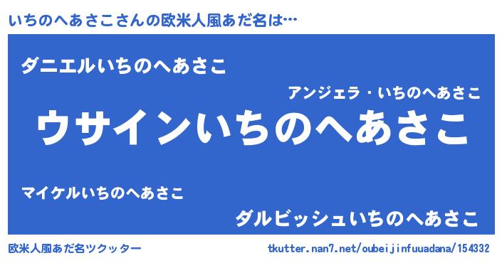 | 男性向けラノベタイトル風あだ名 | 『いちのへあさこの嫁は女の子じゃないと思った?』 |