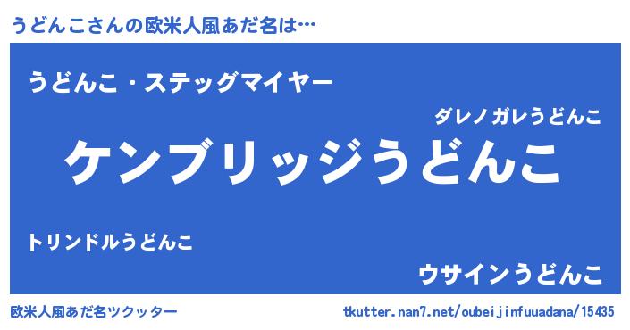 | 男性向けラノベタイトル風あだ名 | 『Re:うどんこから始める異世界生活』 |