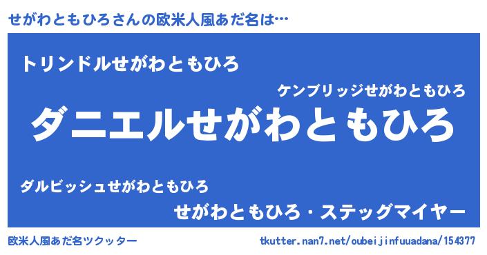 | ヘコむあだ名 | 『せがわともひろ(笑)』『せがにー』 |