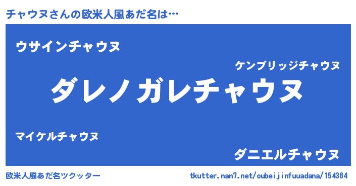 | 男性向けラノベタイトル風あだ名 | 『魔弾の王とチャウヌ』 |