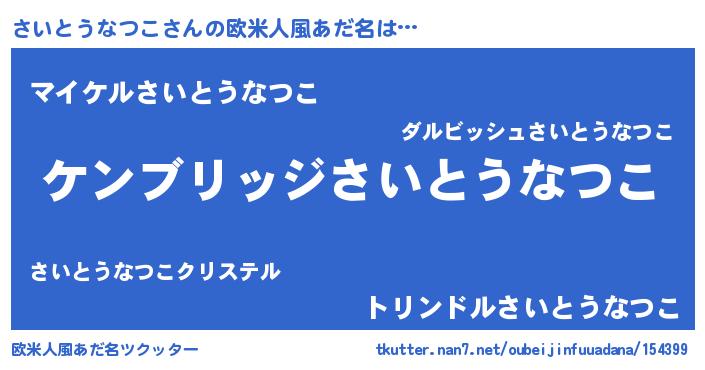 | 男性向けラノベタイトル風あだ名 | 『Re:さいとうなつこから始める異世界生活』 |