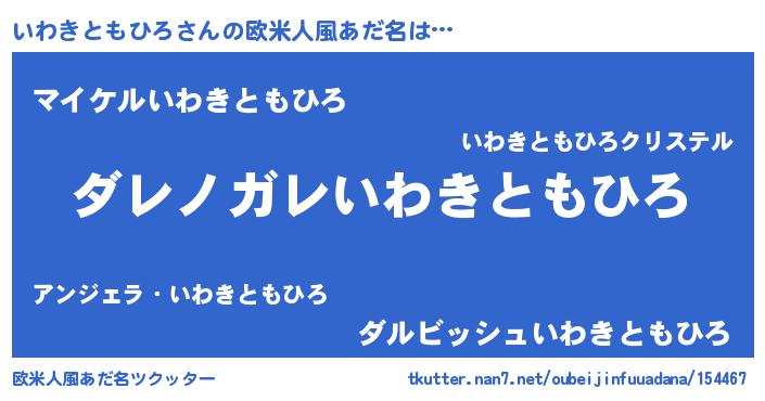 | 男性向けラノベタイトル風あだ名 | 『この素晴らしい世界にいわきともひろを!』 |