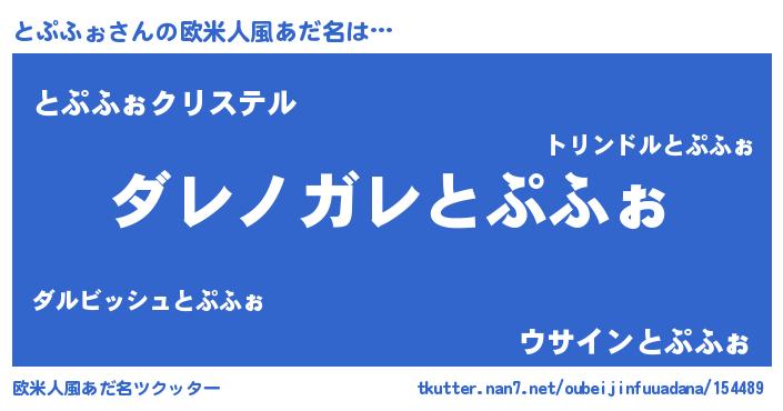 | 意味不明あだ名 | 『住所不定無職とぷふぉ(6歳)』 |