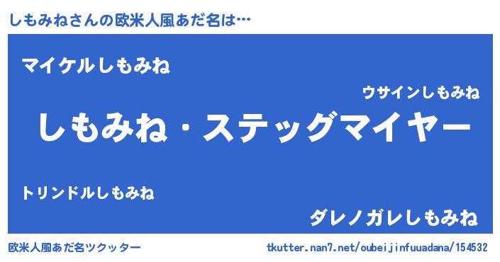 | ヘコむあだ名 | 『しもふぇ~』『しもぷりん』 |