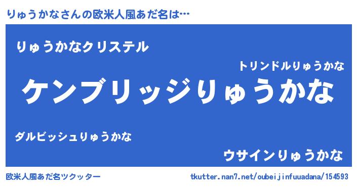 | 男性向けラノベタイトル風あだ名 | 『Re:りゅうかなから始める異世界生活』 |
