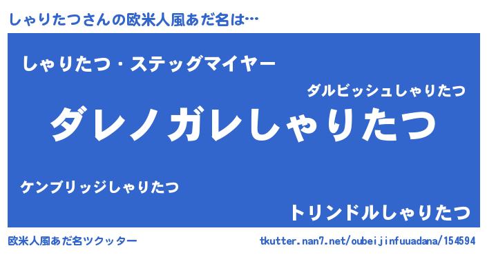 | 女子向けラノベタイトル風あだ名 | 『悪役しゃりたつに転生したようですが、知った事ではありません』 |