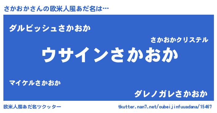 | 男性向けラノベタイトル風あだ名 | 『さかおかの嫁は女の子じゃないと思った?』 |