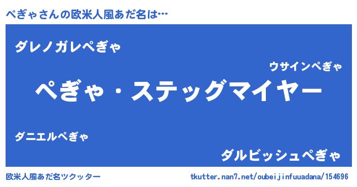 | ヘコむあだ名 | 『ぺぎゃ(笑)』『ぺぎっちょ』 |